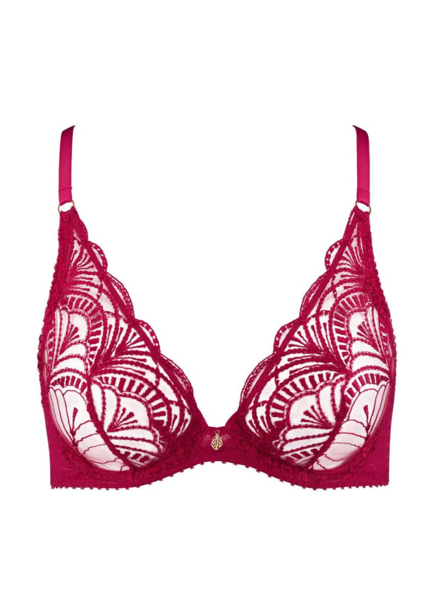 - Une laize graphique vient dénoter les rondeurs de la broderie et laisse percevoir la peau par transparence