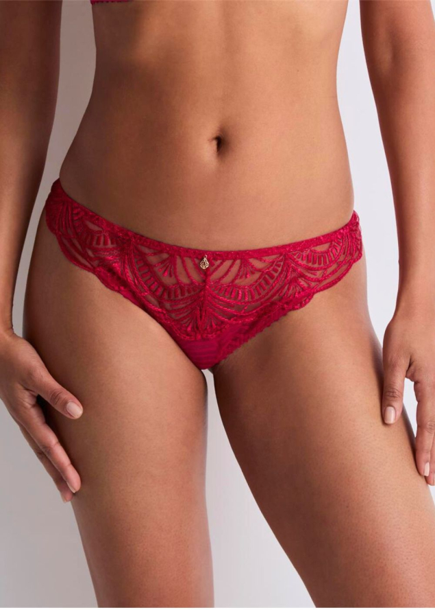 - Une laize graphique vient dénoter les rondeurs de la broderie et laisse percevoir la peau par transparence