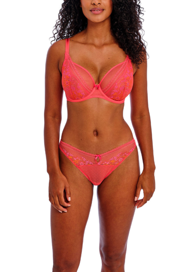 - Décolleté plongeant en résille rigide semi-transparente pour un look léger mais un maintien parfait