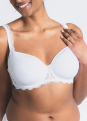 Soutien-gorge en spacer : matière respirante qui galbe la poitrine sans ajouter de volume. Dentelle élastique qui habille l'entre-seins et la basque pour un soutien-gorge du quotidien invisible et raffiné. Dentelle française. Dos en tulle élastique pour le maintien. Bretelles satinées bordées de dentelle. Toutes nos matières sont certifiées OEKO-TEX®.