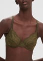 Soutien-gorge en dentelle avec armatures. Forme emboîtante. Décolleté souligné par les festons de dentelle. Construction bonnets en 3 parties pour un galbe rond. Bonnets doublés de tulle rigide pour un meilleur maintien. Dos cheminée en dentelle avec festons, demi dos doublé de tulle nerveux toutes tailles. Bretelles fantaisies multi-positions : classiques ou croisées pour s'adapter à toutes les tenues.
