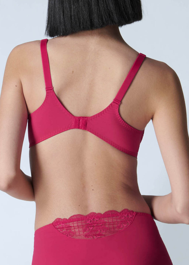 Soutien-gorge en dentelle avec armatures. Forme emboitante. Idéal pour une poitrine canalisée et un maintien optimal. Décolleté carré souligné par des festons de dentelle. Construction bonnets en 3 parties pour un galbe rond. Côtés et bas bonnets doublés de tulle rigide pour un meilleur maintien et une poitrine recentrée. Basque soulignée de festons de dentelle. Dos cheminée en maille nerveuse, doublé à partir du D pour un maintien optimal dans les grandes profondeurs. Bretelles réglables. Matières certifiées Oeko-Tex®.