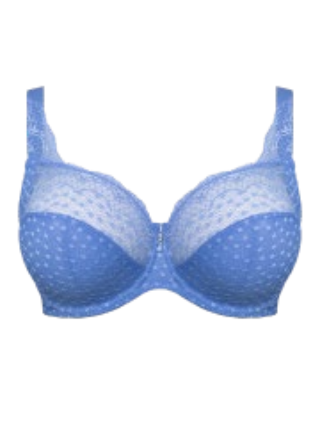Bonnet en trois parties à partir du E avec une couture supplémentaire pour renforcer le dessous de poitrine. Maintien et façonnage grâce au bandeau latéral. Bretelles centrales et confortables.